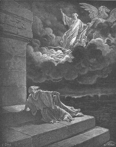 9 Havendo eles passado, Elias disse a Eliseu: Pede-me o que queres que eu te faça, antes que seja tomado de ti. Disse Eliseu: Peço-te que me toque por herança porção dobrada do teu espírito. 10 Tornou-lhe Elias: Dura coisa pediste. Todavia, se me vires quando for tomado de ti, assim se te fará; porém, se não me vires, não se fará. 11 Indo eles andando e falando, eis que um carro de fogo, com cavalos de fogo, os separou um do outro; e Elias subiu ao céu num redemoinho. 12 O que vendo Eliseu, clamou: Meu pai, meu pai, carros de Israel e seus cavaleiros! E nunca mais o viu; e, tomando as suas vestes, rasgou-as em duas partes. 13 Então, levantou o manto que Elias lhe deixara cair e, voltando-se, pôs-se à borda do Jordão. 14 Tomou o manto que Elias lhe deixara cair, feriu as águas e disse: Onde está o SENHOR, Deus de Elias? Quando feriu ele as águas, elas se dividiram para um e outro lado, e Eliseu passou.
