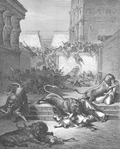 Os leões destroem gente estranha em Samaria